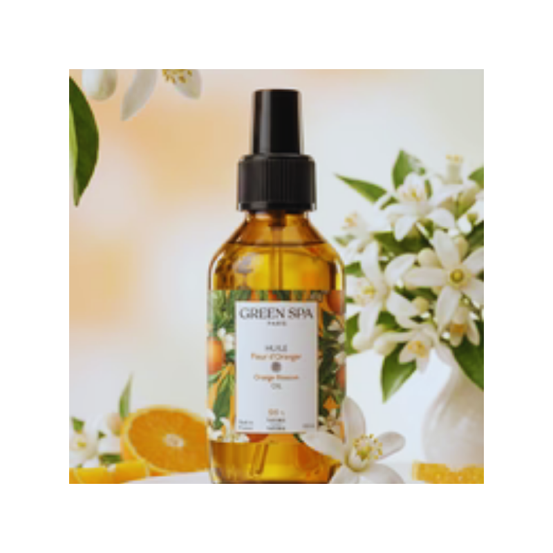 Un voyage sensoriel unique : Utilisée depuis des siècles dans les rituels méditerranéens, la fleur d’oranger est synonyme de bien-être et de raffinement. Green Spa magnifie cet héritage à travers une huile soyeuse qui glisse parfaitement sous les mains, transformant chaque soin en véritable parenthèse d’évasion estivale.